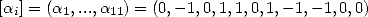 , the simplest is given by ![[ai] = (34,18,25,41,0,0,- 18,18,0,-25,0)](../mathematiciens/huvent/hyperg756x.gif)